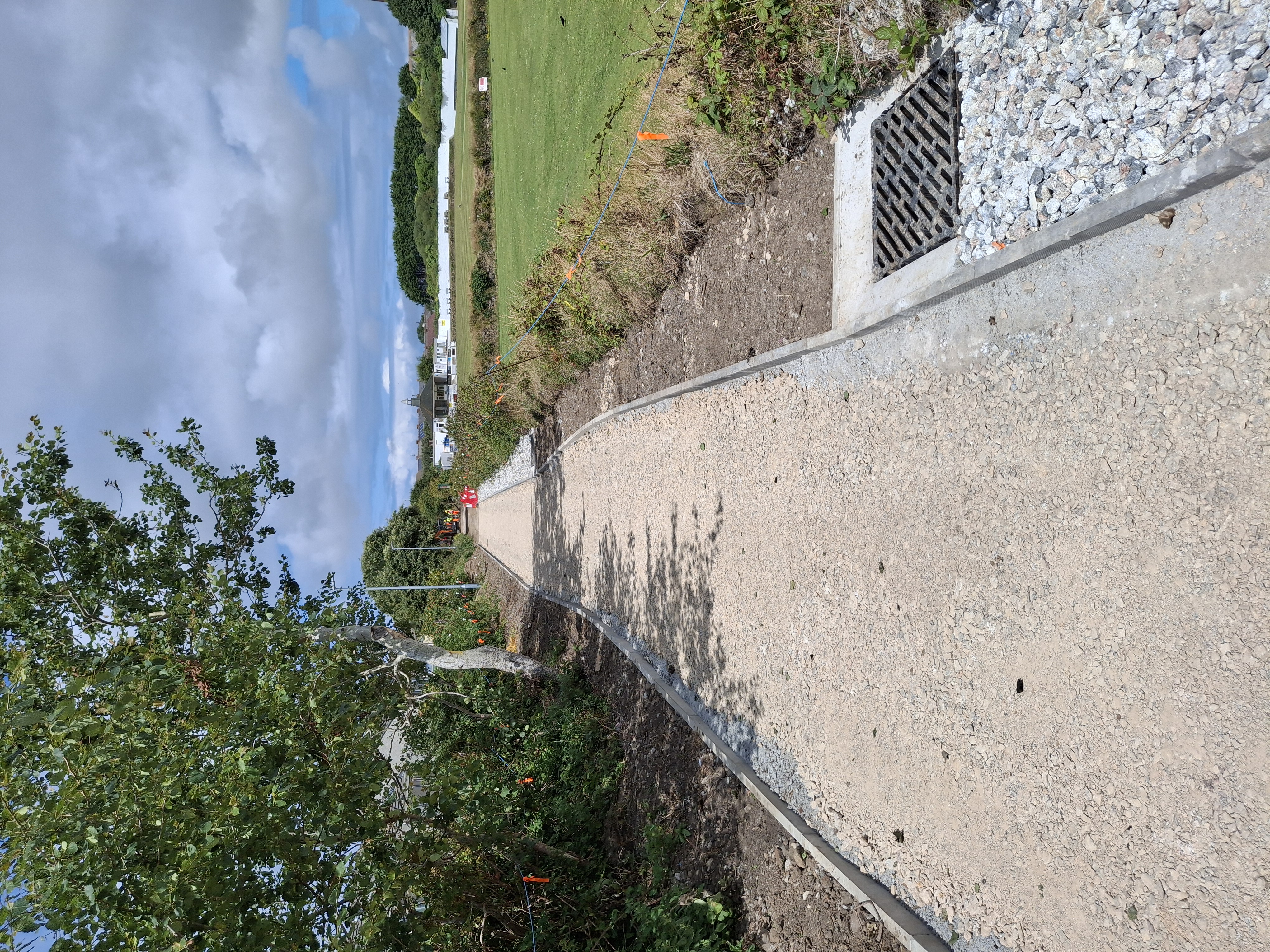 Good progress is being made on the south section of the tramway, between North Roskear Road and Roskear Road (past the cricket club). Repairs to the wall are now complete and whilst construction of the new footway along with drainage and streetlights is ongoing, the whole route is planned to be open in September.
