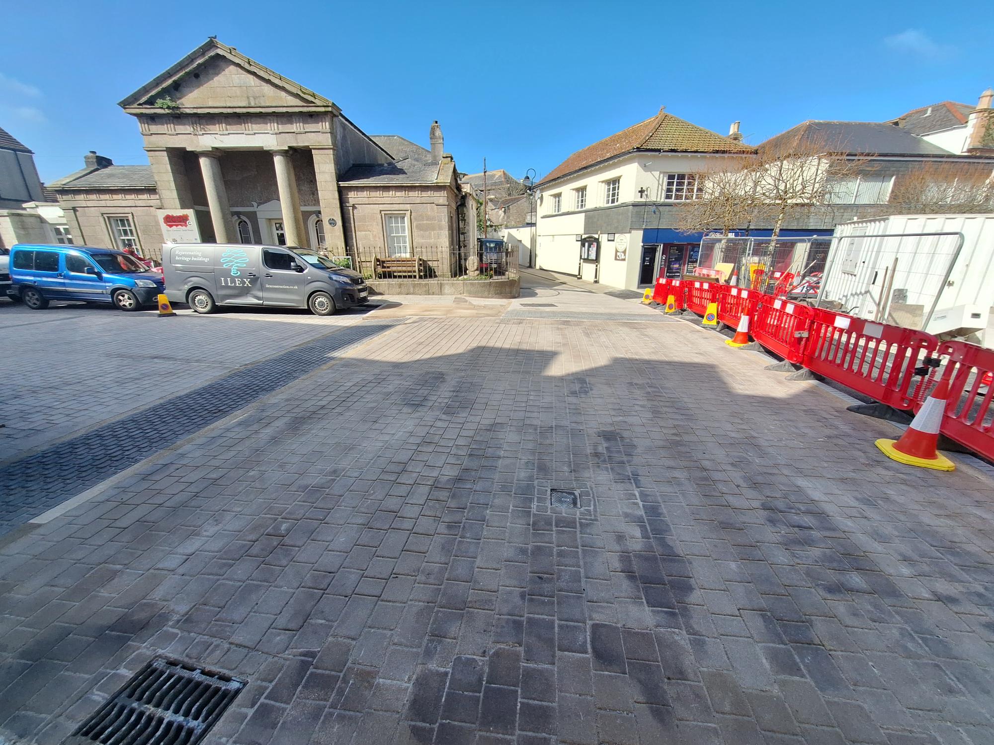 The Renew scheme is really starting to take shape, with the new crossing and granite block ramp at the entrance to Trelowarren Street completed during the fortnight road closure in January, despite the awful weather conditions.