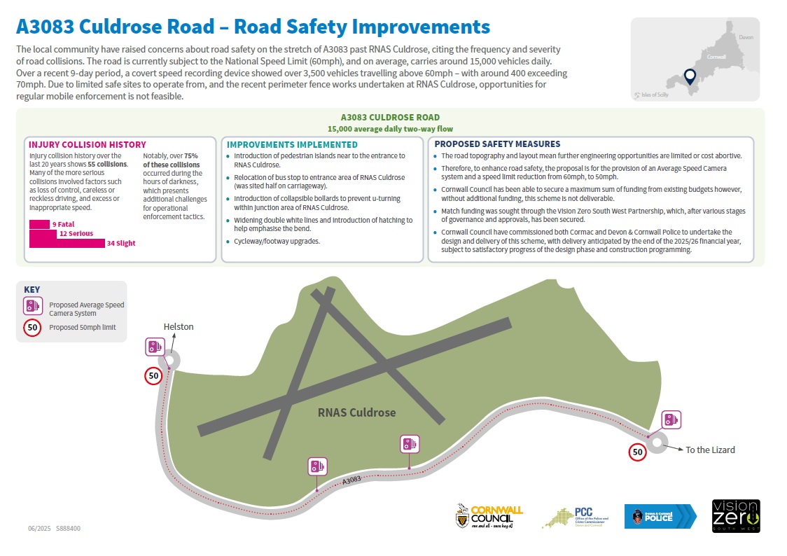 Please complete this Consultation Feedback Form to give your views on changes to Culdrose, A3083 Average Speed Cameras by Thursday 19th March 2026.