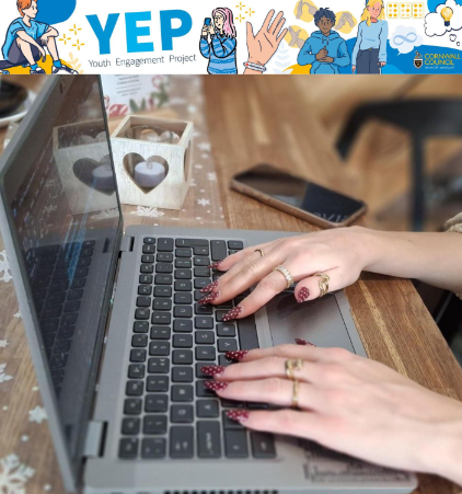 Learning new skills on the Laptop When Zara joined YEP, she was facing big challenges in education. These had a serious impact on her mental and physical health. At the start of our meetings, she was getting regular support from two mental health services. “I am actually excited for the future, which is a new feeling for me.” - Zara