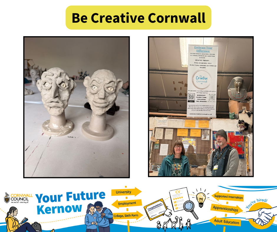 Be Creative CornwallThe Your Future Kernow Team visited Be Creative Cornwall in Wadebridge. The centre supports young people who find mainstream education hard. Many of the students are neurodiverse or have an EHCP. Some are on roll but not attending. Others receive Education Other Than At School (EOTAS). All of them enjoy art and learn best in a calm space.
