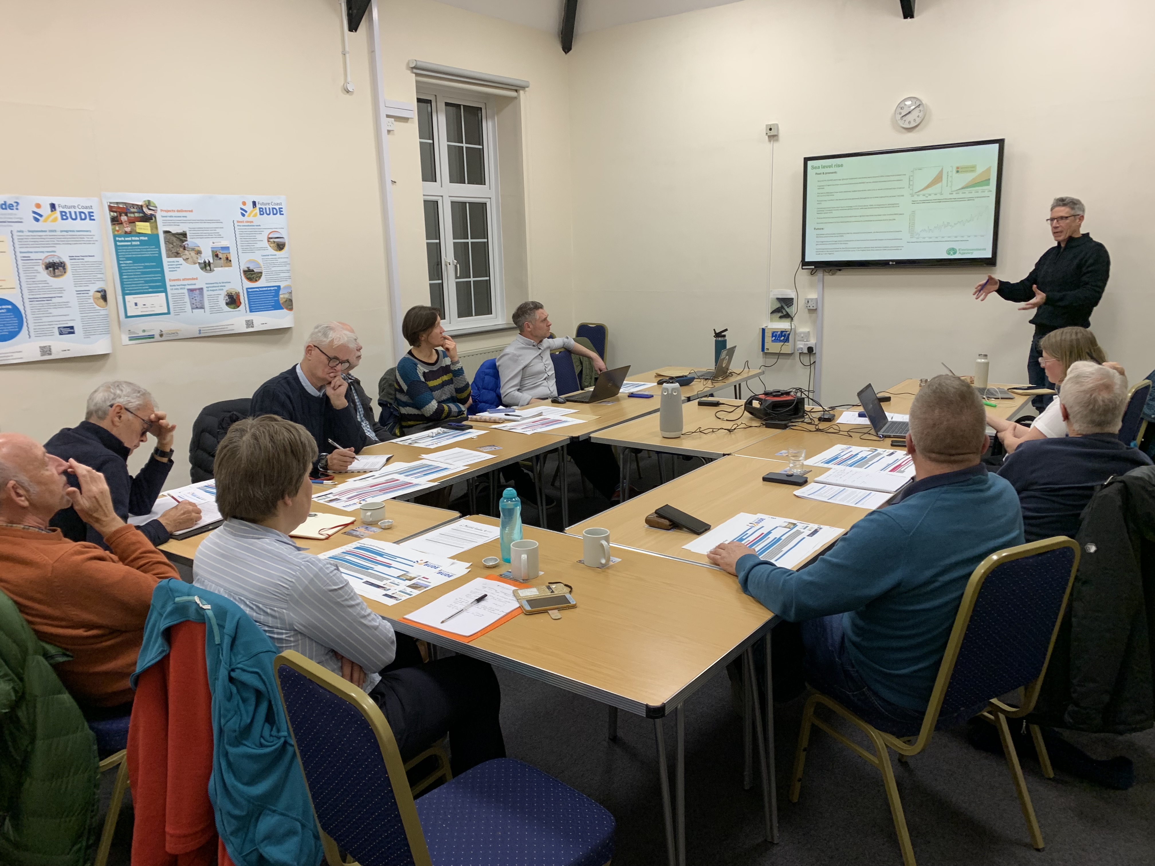 Share Critical Friends Group meets on Facebook Share Critical Friends Group meets on Twitter Share Critical Friends Group meets on Linkedin Email Critical Friends Group meets linkThe Future Coast Bude Critical Friends Group met for the first time on Tuesday 9 December at the Parkhouse Centre. The focus of this session was to look at the past, present and future flood risk facing the community in Bude. This covered historic flood events, types of flooding, governance and legislation, as well as ways to manage flood risk and a broad ranging discussion on flood risk in the future - both from the river, sea and their combined effect. The invited individuals in the room and online provided good challenge and discussion. The presentations can be found in the documents folder on the right of the web page.