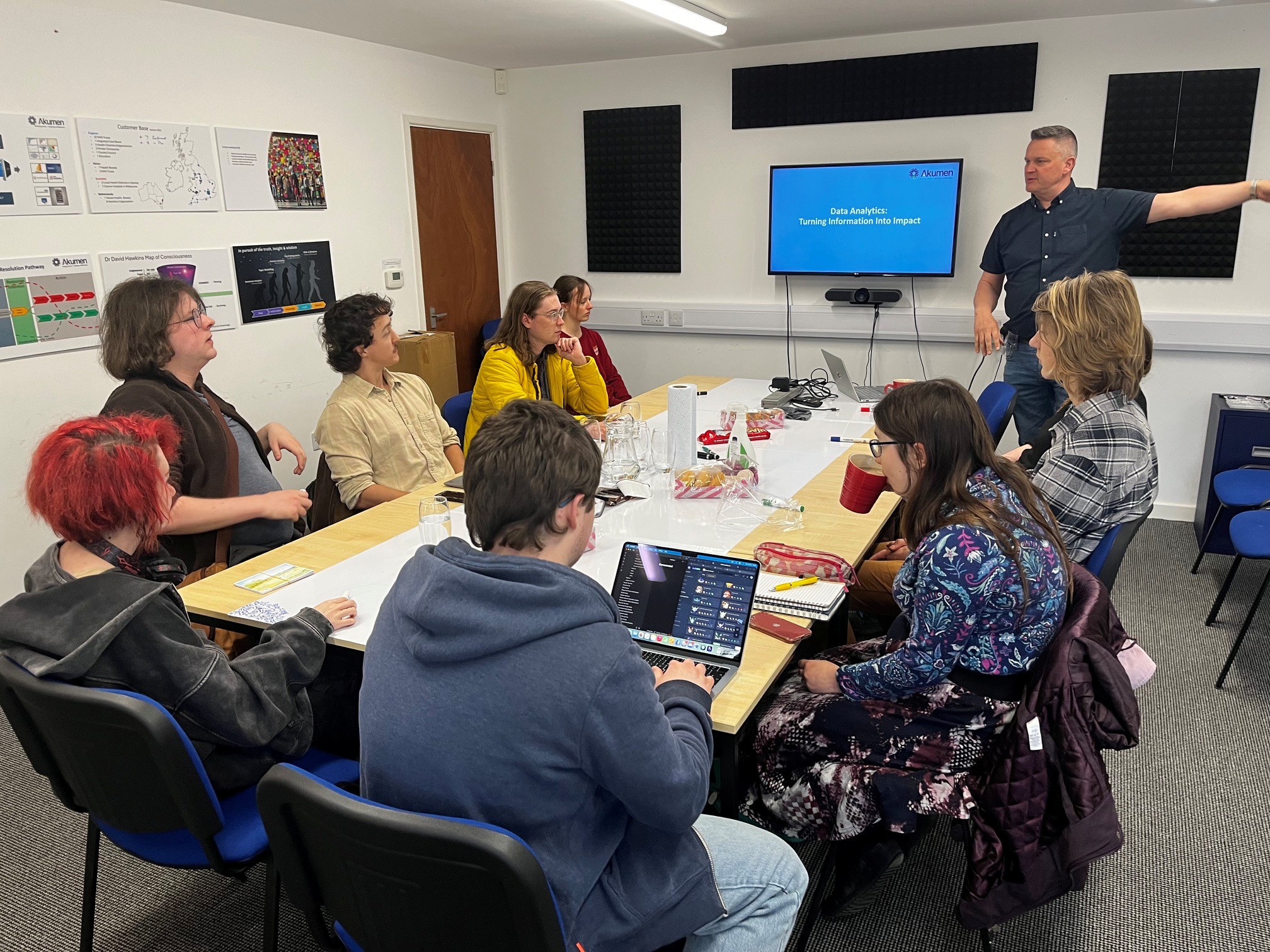 The 90‑minute session was personally led by Akumen’s Chief Executive, Rob Horton, who introduced the Youth Board to practical data analysis skills that will directly support their work on the project. The training was hosted at Akumen’s offices, where the team were warmly welcomed — complete with drinks and cake to keep energy levels high.