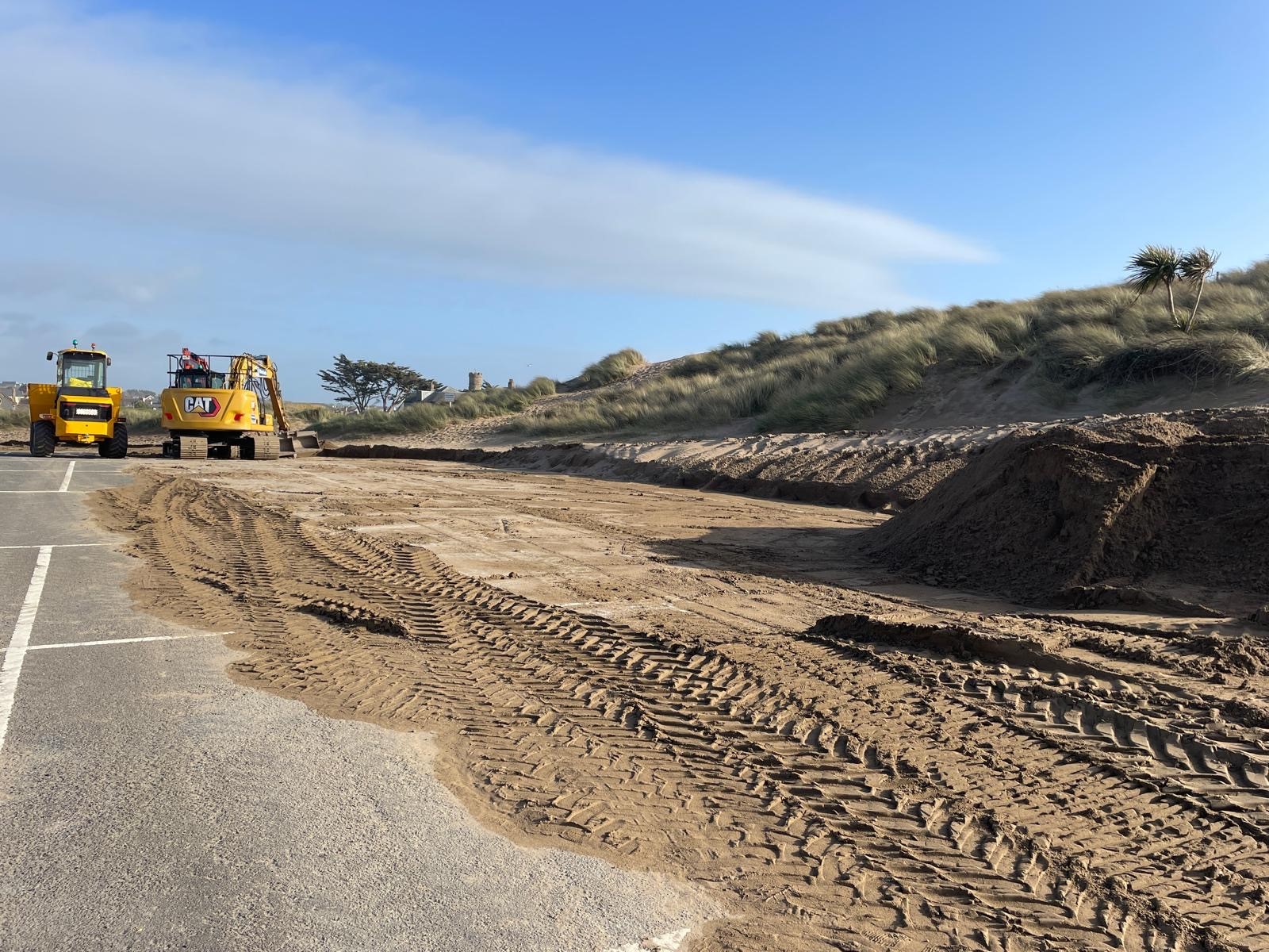 Local contractors JB Groundworks and Utilities will be moving the wind blown-sand off a number of the car parking spaces in Summerleaze car park and moving this sand onto the front of the sand dune.